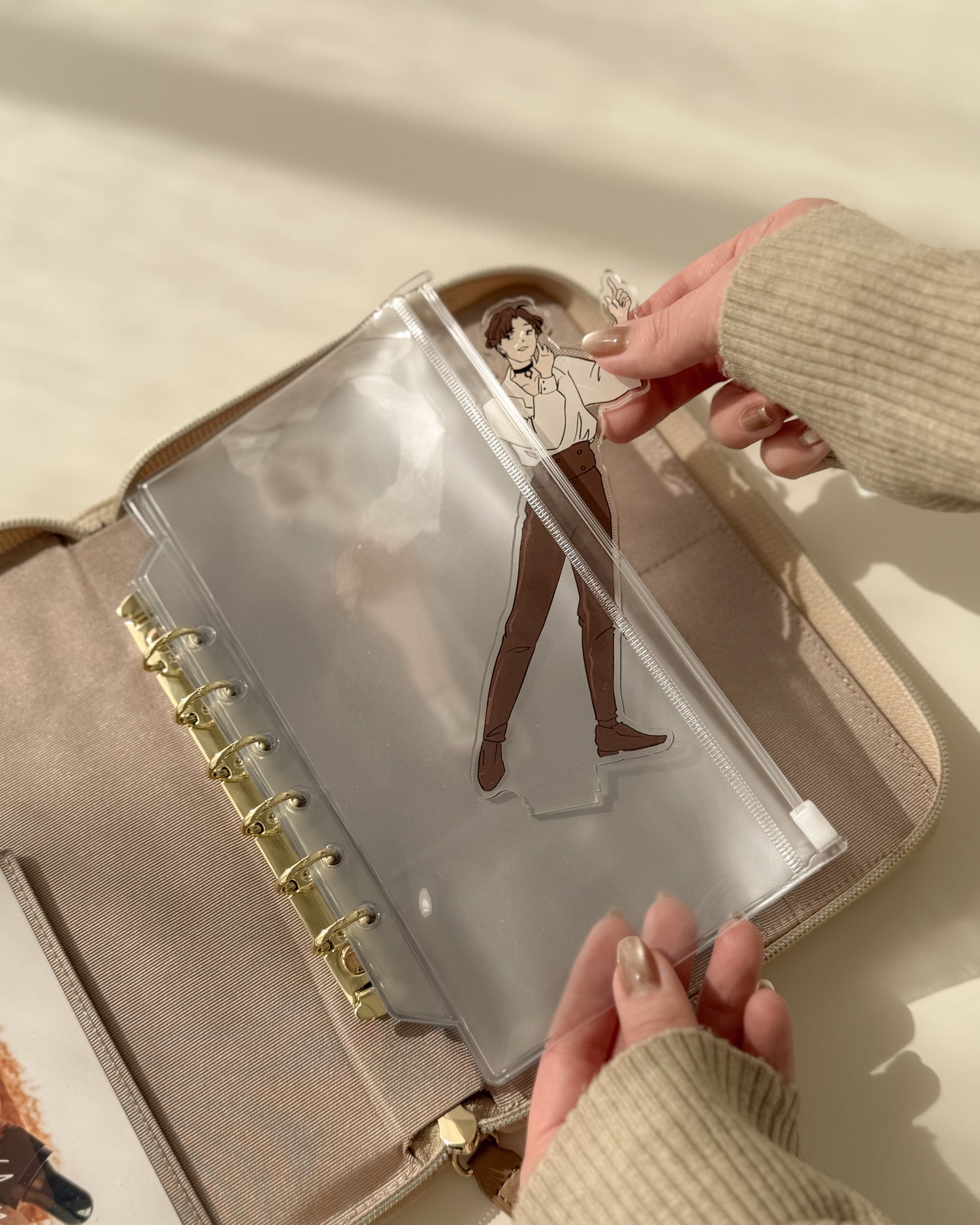 推しのアクリルスタンドなどを収納できる便利なジッパークリアケースです。